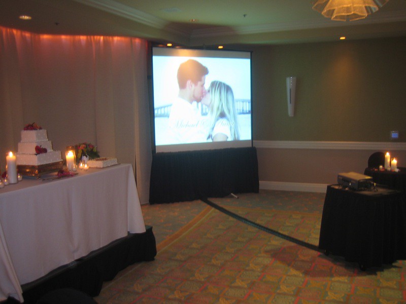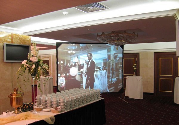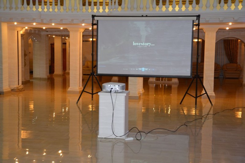 Самый популярный способ показа Love story на свадьбах - это мультимедийный проектор и экран.