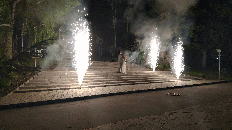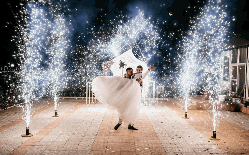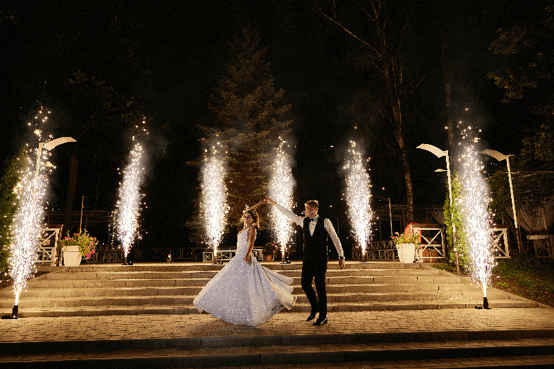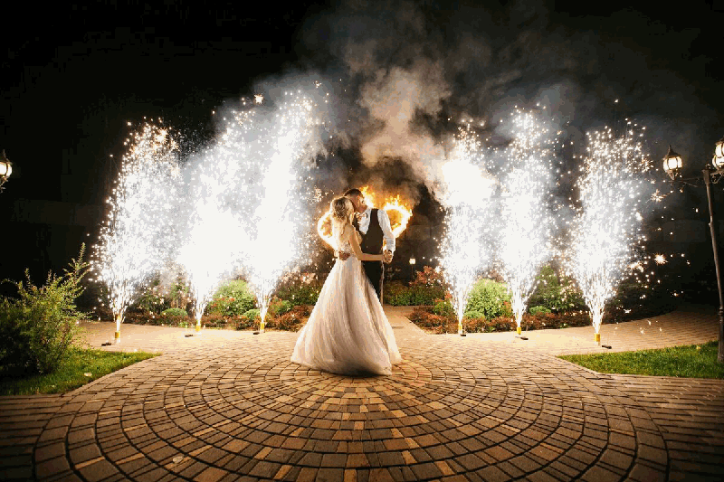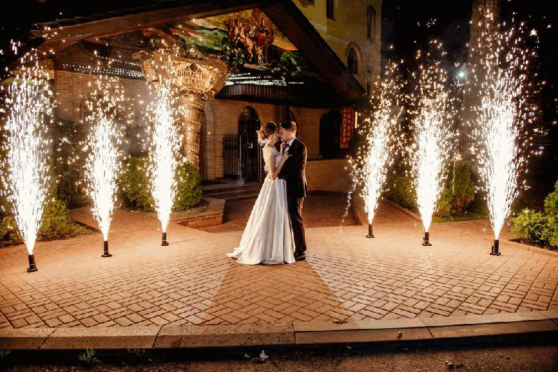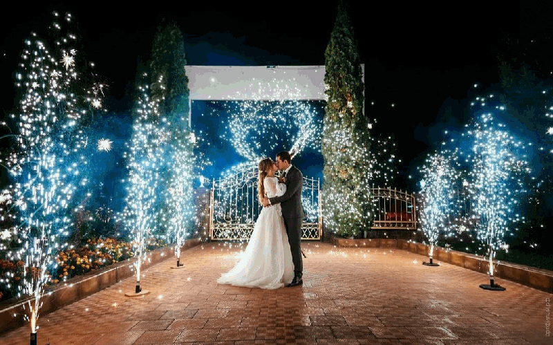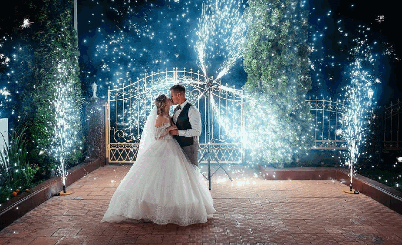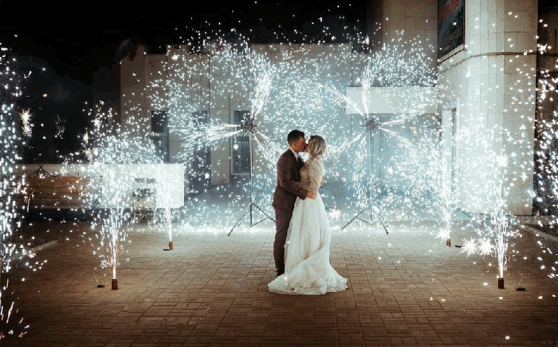 Холодные пиротехнические фонтаны на свадьбу. Искромёты, веера, вертушки для пиротехнического шоу.
