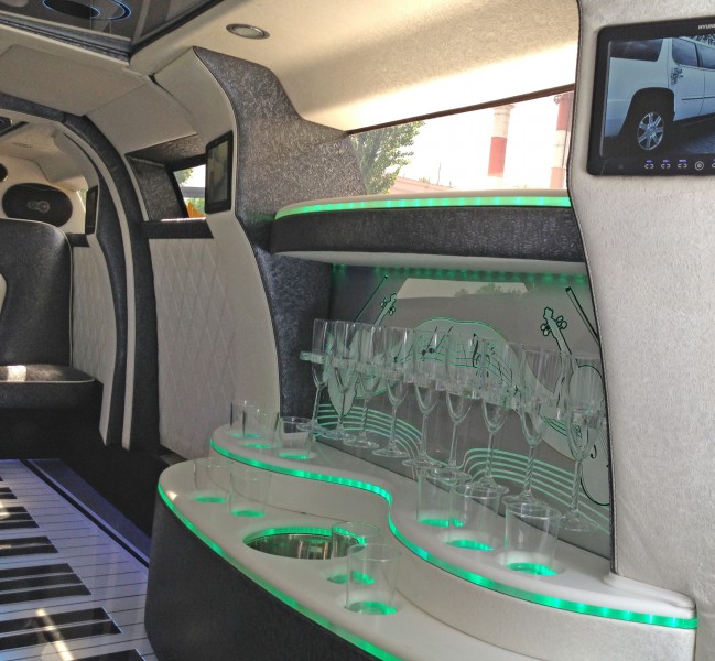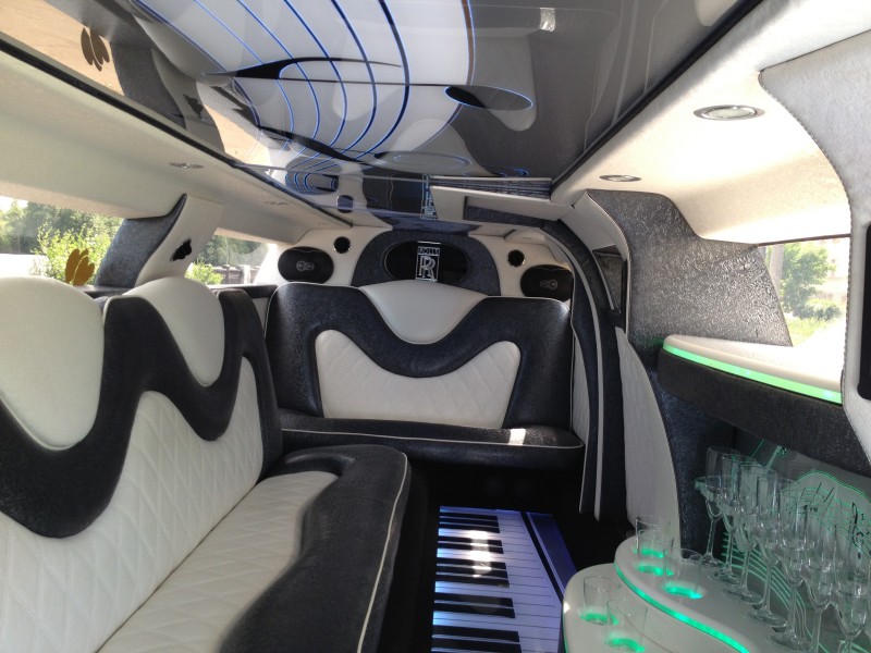 Цвет - белый. Вместимость - 10 мест. Оборудован: кондиционером, 3 TV. Салон: бело-черная кожа, бар «Violin» с подсветкой. Дископол «Piano» и дископотолок «Stave» с подсветкой RGB. Эксклюзивный дизайн в стиле Rolls-Royce - восторженные взгляды Вам обеспечены! Дополнительная вертикальная боковая дверь для удобного входа и выхода, невеста заходит в полный рост!