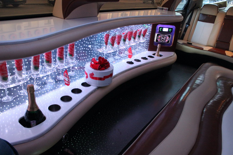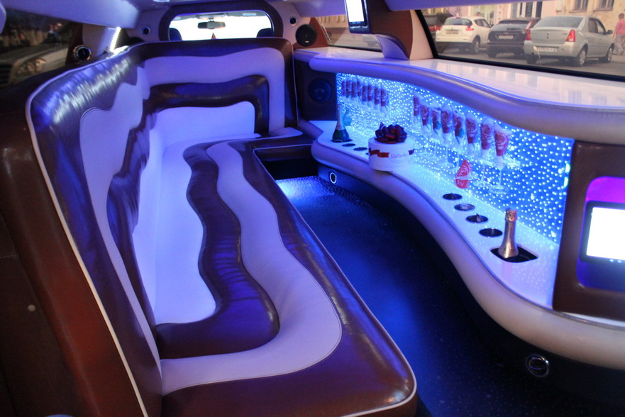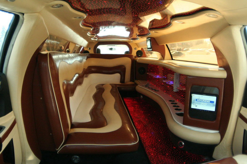 Цвет - золотой. Вместимость - 10 мест. Оборудован: кондиционером, TV. Салон: коричневая кожа, бар, звездное небо.