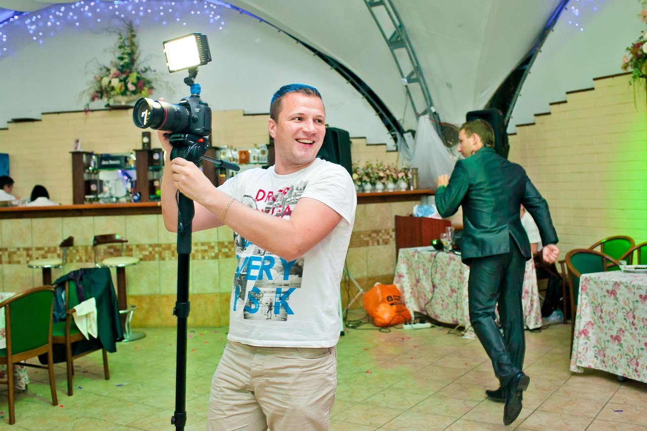 • Качество техники. Профессиональный свадебный видеооператор всегда снимает современной профессиональной камерой, владея ею в совершенстве. Также он использует дополнительное оборудование, обеспечивающее высокое качество съёмки: стедикам (для стабилизации изображения), штативы, дополнительное освещение, сменные объективы. Вероятность того, что у оператора-новичка и уж тем более, любителя окажется достойная видеотехника, стремится к нулю. Почему? Потому что она стоит очень больших денег.